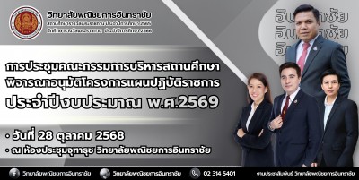 19 ชั่วโมง ที่ผ่านมาการประชุมคณะกรรมการบริหารสถานศึกษา พิจารณาอนุมัติโครงการแผนปฏิบัติราชการ ประจำปีงบประมาณ พ.ศ.2569