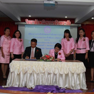 งานอาชีวศึกษาทวิภาคี งานความร่วมมือ วิทยาลัยพณิชยการอินทราชัย จัดพิธีลงนามบันทึกข้อตกลงว่าด้วยความร่วมมือ ในการจัดการอาชีวศึกษา ระหว่าง วิทยาลัยพณิชยการอินทราชัย กับ สถานประกอบการ ณ ห้องประชุมอินทราชัย เมือวันที่ 2 สิงหาคม 2558