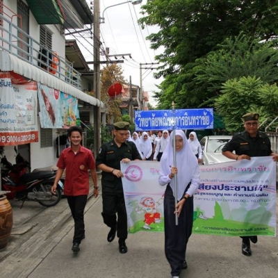 งานกิจกรรมนักเรียน นักศึกษา ตัวแทนนักเรียน นักศึกษา คณะครู เจ้าหน้าที่ ร่วมกิจกรรมเดินรณรงค์และประชาสัมพันธ์ในการลงประชามติ ร่วมกับสำนักงานเขตวังทองหลาง ณ บริเวณแยกประชาธรรม ถนนประดิษฐมนูธรรม เมื่อวันที่ 4 สิงหาคม 2559
