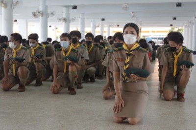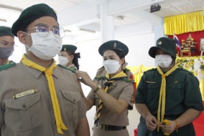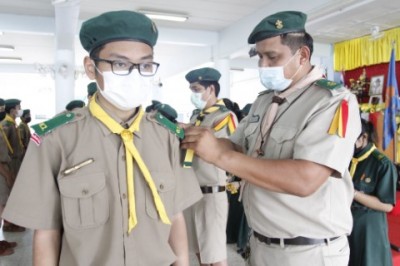 กิจกรรมประดับแถบสองสีลูกเสือวิสามัญ ประจำปีการศึกษา 2565 วันที่ 3 สิงหาคม 2565 ณ อาคารเฉลิมพระเกียรติ วิทยาลัยพณิชยการอินทราชัย
