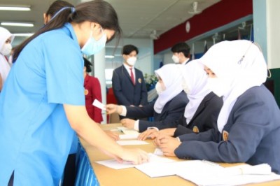 พิธีมอบทุนการศึกษาประจำปี 2565 วันที่ 11 สิงหาคม 2565 ณ อาคารเฉลิมพระเกียรติ วิทยาลัยพณิชยการอินทราชัย